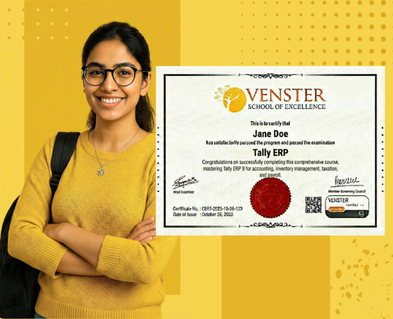 Upon successful completion of the Tally ERP Training Program, you will receive an Industry-Recognized Certificate of Completion from Venster School of Excellence.