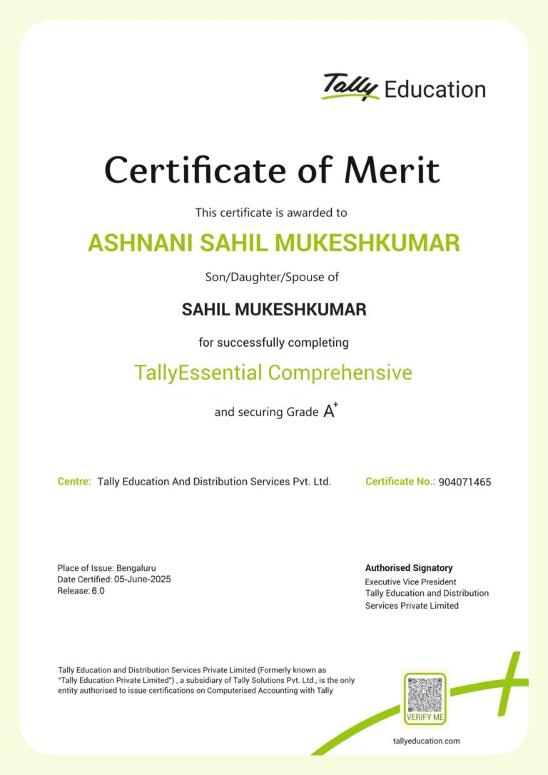- 🎓 TallyEssential Level 1 – Foundation Certificate